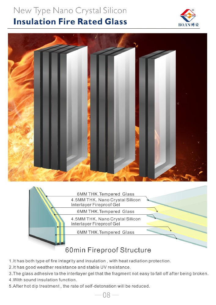 New Type Nano Crystal Silicon Insulation Fire Rated Glass